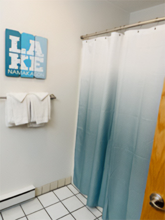 The Birches and Hemlock condos are right next to the outdoor pool; the Lakeview condo is just a short distance away. Two charcoal grills are located outside of each building along with picnic benches and a fire pit down by the lake.